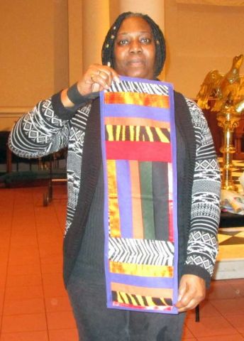 Paper pieced wall hanging with vibrant colors with hanging sleeve |